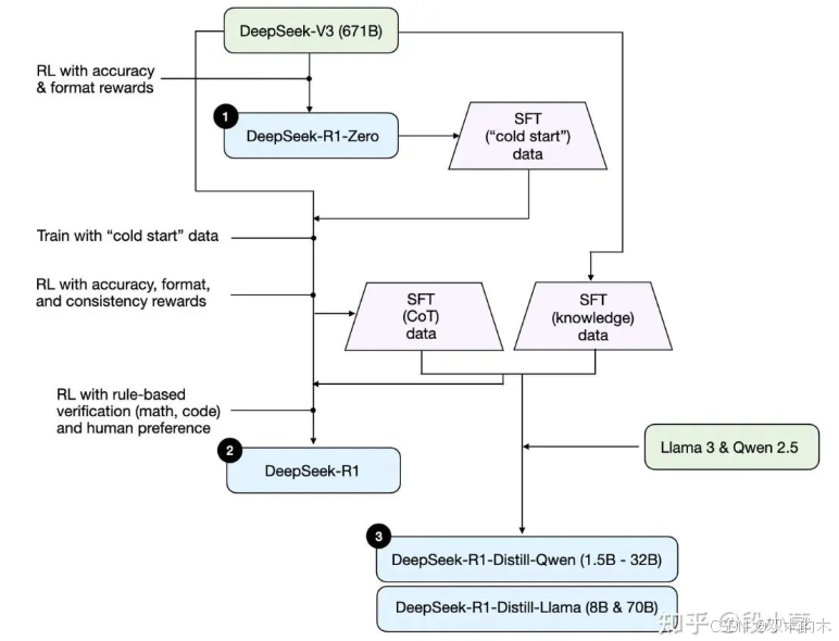 • 纯强化学习(RL),如 DeepSeek-R1-Zero 所展示的,它表明推理可以作为一种学习行为出现,而无需监督微调(SFT)。