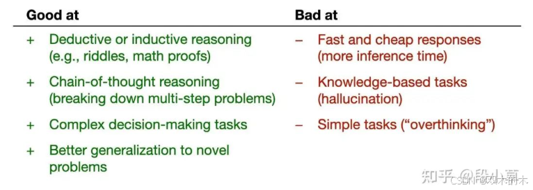 推理型模型的开发正是这些专业化的一部分。这意味着我们将大语言模型进一步优化,使其能够在需要通过中间步骤解决的复杂任务中表现出色,比如解谜、复杂数学运算和编程挑战。然而,这种专业化并不会取代其他大语言模型应用。因为将大语言模型转化为推理型模型也会带来一些弊端,稍后我会详细讨论这些问题。
