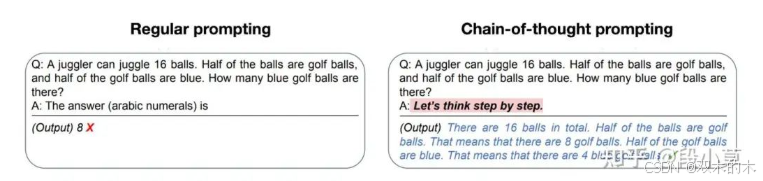 2022年《大型语言模型是 0-shot 推理器》论文(https://arxiv.org/abs/2205.11916)中的经典 CoT(Chain-of-Thought)提示示例