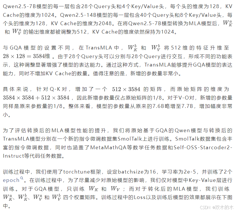 我们以Qwen2.5为例,展示如何将一个基于GQA的模型转换为MLA模型,并对比转换前后的模型在下游任务中的训练效果。