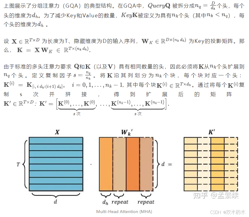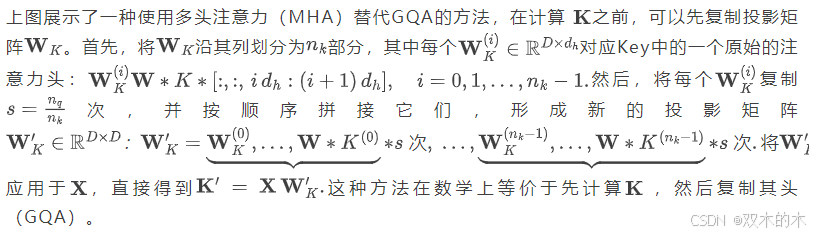 证明:通过接下来的1)2)3)节,我们论证了任何GQA都可以等价转换为具有相同KV Cache大小的MLA形式。在第4)节中,存在MLA无法通过GQA表示的情况。从而完成定理1的证明。