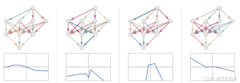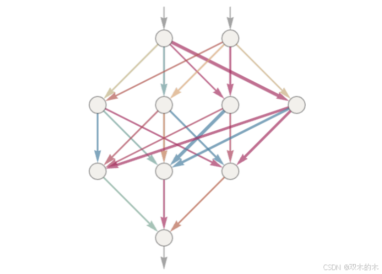 在传统的(受生物启发的)设置中,每个神经元实际上都有一组来自上一层神经元的 “传入连接”,每个连接都被赋予一定的 “权重”(可以是一个正数或负数)。一个给定的神经元的值是通过将 “前一个神经元” 的值乘以其相应的权重来确定的,然后将这些值相加并乘以一个常数,最后应用一个 “阈值”(或 “激活”)函数。