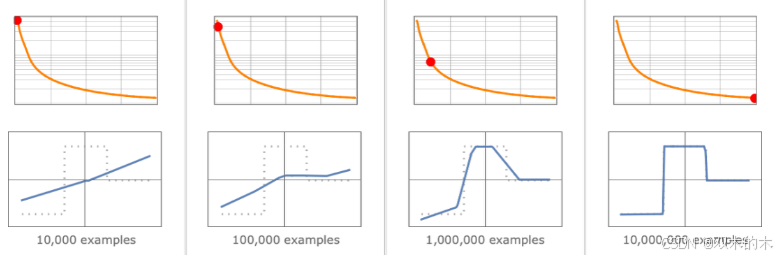 而人们通常看到的是,损失在一段时间内减少,但最终在某个恒定值上趋于平缓。如果这个值足够小,那么可以认为训练是成功的;否则,这可能是一个应该尝试改变网络结构的信号。