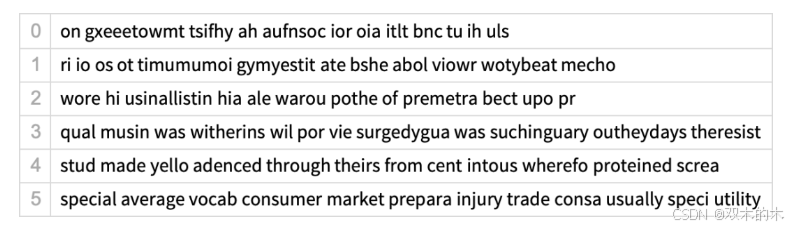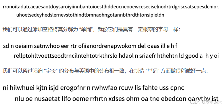 下面是我们得到的一个样本,如果我们用这些概率生成一个字母序列: