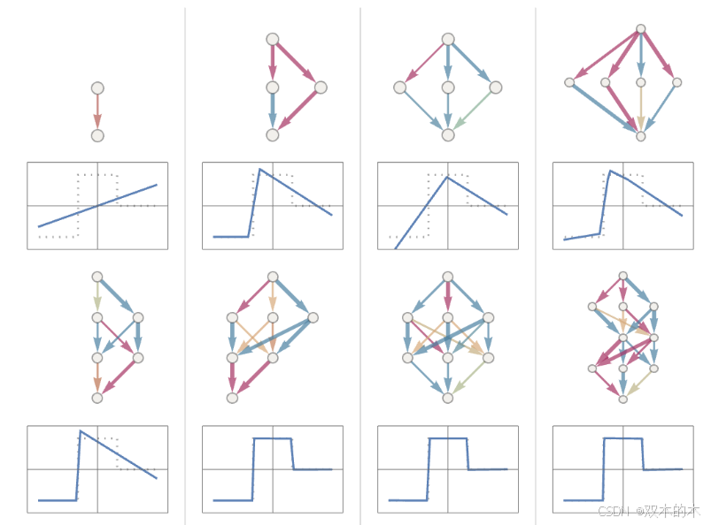 让我们看看其他一些神经网络的情况。在每一种情况下,正如我们稍后所解释的,我们都在使用机器学习来寻找最佳的权重选择。然后,我们在这里展示带有这些权重的神经网络的计算结果: