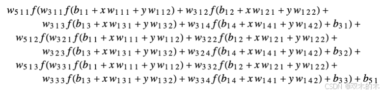 最终,每个神经网络都对应于一些整体的数学函数 —— 尽管它可能写得很乱。对于上面的例子,它就是: