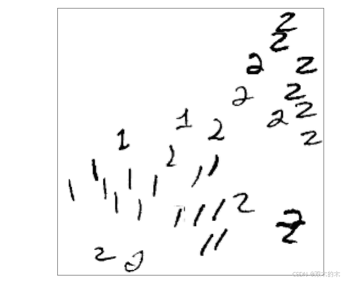 我们希望所有的 1 都 “被吸引到一个地方”,而所有的 2 都 “被吸引到另一个地方”。或者,换一种方式,如果一个图像在某种程度上 “更接近于 1”,而不是 2,我们希望它最终出现在 “1 的地方”,反之亦然。