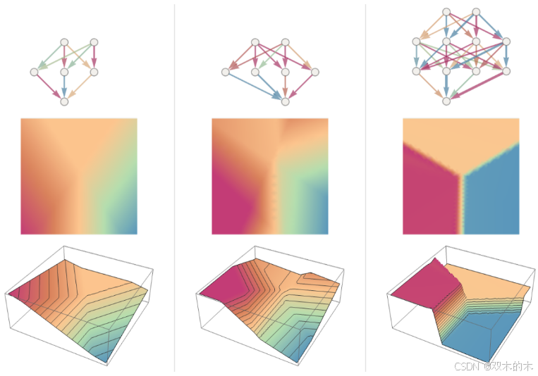 更大的网络通常能更好地逼近我们的目标函数。而在 “每个吸引子盆地的中间”,我们通常会得到我们想要的答案。但在边界 —— 神经网络 “很难下定决心” 的地方 —— 情况可能会更加混乱。
