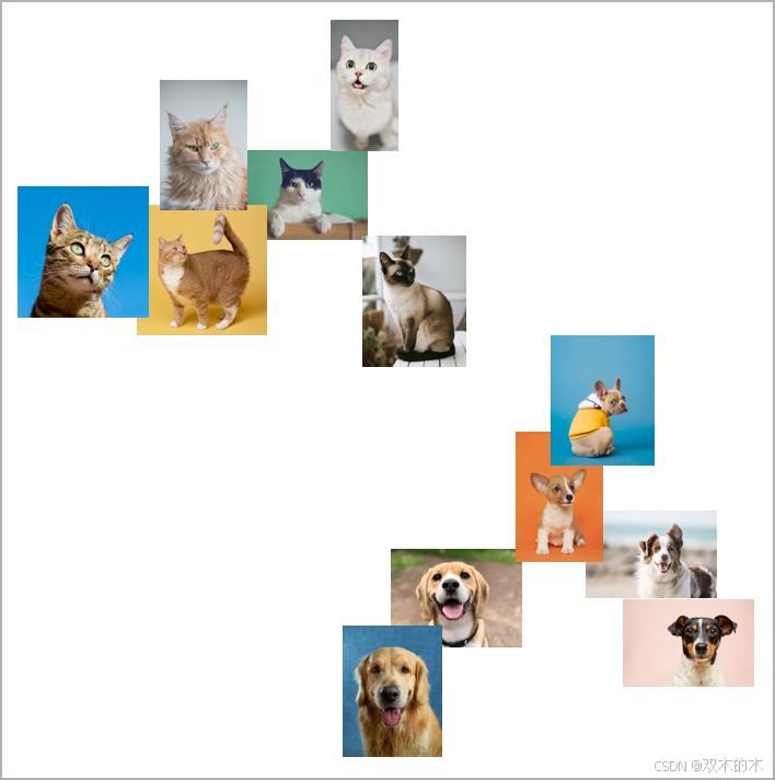 让我们举一个更复杂的例子。比方说,我们有猫和狗的图像。我们有一个神经网络,它被训练来区分它们。下面是它在一些例子中可能做的事情: