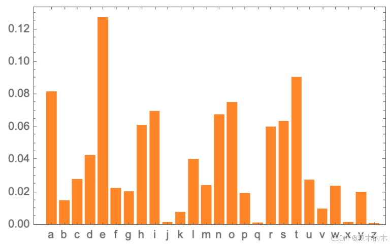 我们可以做的一个非常简单的事情就是取一个英语文本的样本,然后计算不同字母在其中出现的频率。因此,举例来说,这是计算维基百科上关于 “猫”(cat) 的文章中的字母: