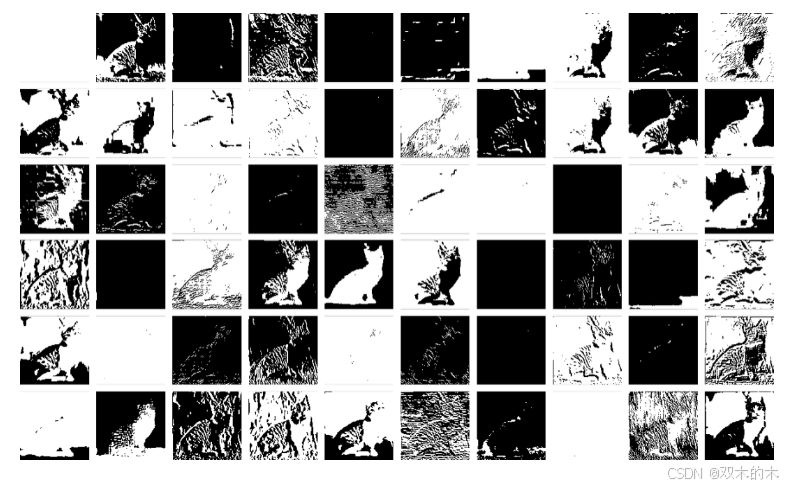 那么我们就可以用一组衍生图像来表示第一层神经元的状态 —— 其中许多图像我们可以很容易地解释为 “没有背景的猫” 或 “猫的轮廓” 等: