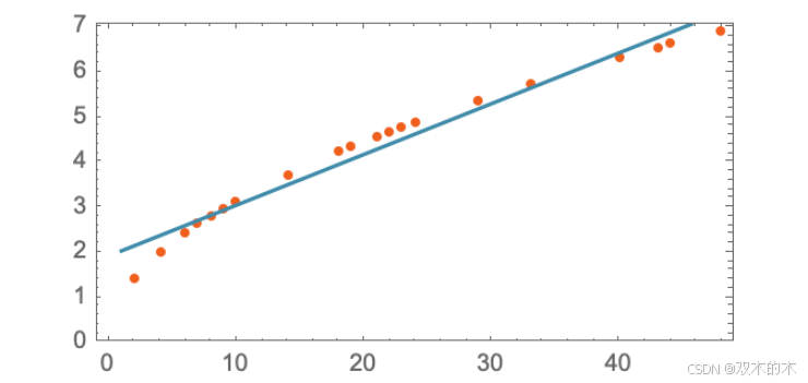 我们可以选择不同的直线。但这是平均来说最接近我们所给的数据的一条。而根据这条直线,我们可以估算出任何楼层的下降时间。
