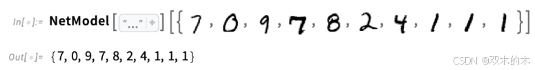 但最终的结果是,如果我们把一幅图像的像素值集合输入这个函数,就会得出一个数字,指定我们的图像是哪个数字。稍后,我们将讨论如何构建这样一个函数,以及神经网络的概念。但现在让我们把这个函数当作黑匣子,我们输入例如手写数字的图像(作为像素值的阵列),然后我们得到这些数字对应的数字: