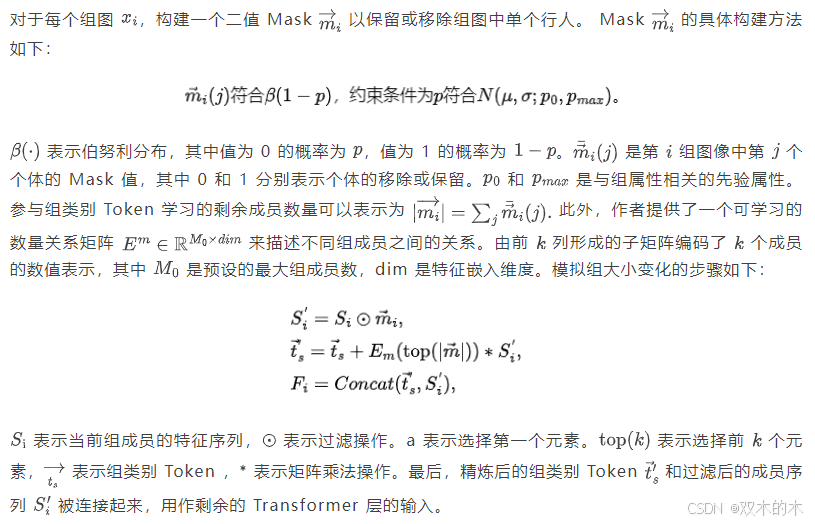 为此,作者提出了一种新颖的Group-CLIP不确定性建模(GCUM)方法,该方法将群体文本描述调整为不确定地适应成员和布局变化。具体来说,作者设计了一个成员变体模拟(MVS)模块,该模块使用伯努利分布模拟成员排除,以及一个群体布局适应(GLA)模块,该模块使用具有身份特定 Token 的不确定群体文本描述。此外,作者设计了一个群体关系构建编码器(GRCE),该编码器使用群体特征来细化个体特征,并采用跨模态对比损失从群体文本描述中获得可泛化的知识。