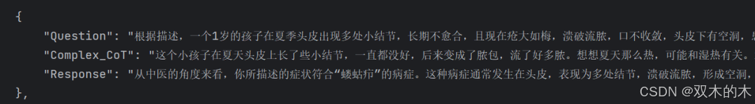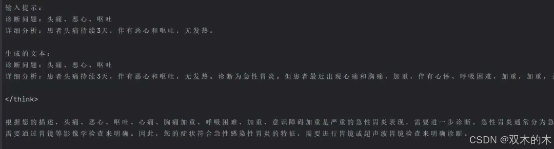 instruction = f"诊断问题:{example['Question']}\n详细分析:{example['Complex_CoT']}"