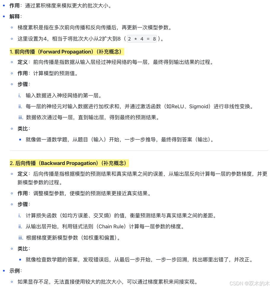 此处以本文进行微调的医学数据进行举例: 假设你有一个很聪明的朋友,他读过全世界的书(相当于大模型的预训练阶段),能和你聊历史、科学、文学等各种话题。 但如果你需要他帮你看医学报告段),能和你聊历史、科学、文学等各种话题。 但如果你需要他帮你看医学报告,虽然他懂一些基础知识,但可能不够专业。这时候,你给他一堆医学书籍和病例,让他专门学习这方面的知识(这就是微调),他就会变得更擅长医疗领域的问题。