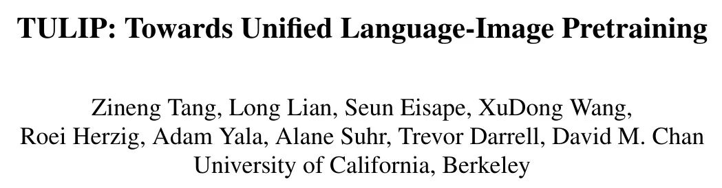 [1]. TULIP: Towards Unified Language-Image Pretraining