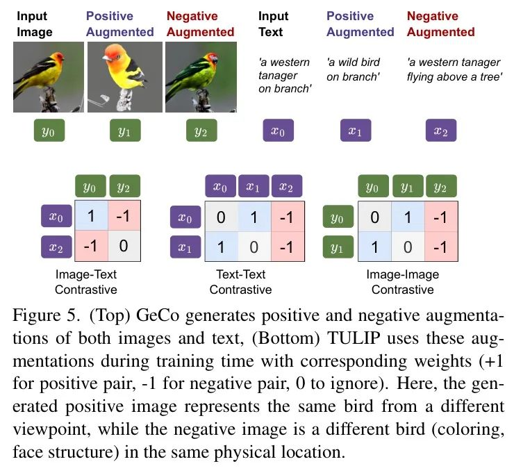 在本工作中,作者引入了TULIP,这是一个开源的、可替换现有CLIP-like模型的方案。TULIP利用生成数据增强、增强的图像-图像和文本-文本对比学习以及图像/文本重建正则化来学习细粒度视觉特征,同时保持全局语义对齐。