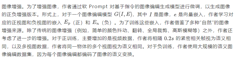 与先前通过生成图像丰富数据集的工作不同,作者的GeCo将生成增强直接集成到对比学习框架中。通过利用大语言模型创建正负两种语言的释义以及基于扩散的图像编辑,作者的双模态方法产生了更丰富的对比视图,从而增强了视觉和文本表示。与仅关注分类或领域迁移的方法不同,GeCo通过生成硬负样本来细化细粒度语义基础,迫使模型区分图像-文本对中的细微差异。