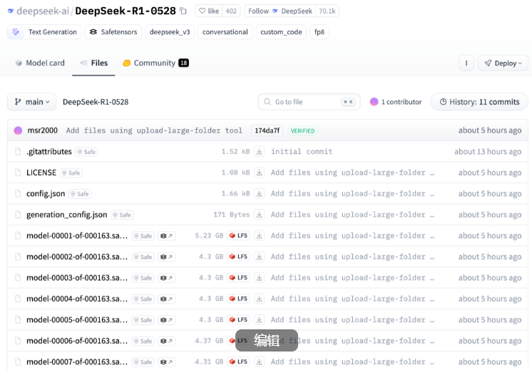 DeepSeek-R1-0528模型权重已上传到HuggingFace,不过模型卡暂未更新。