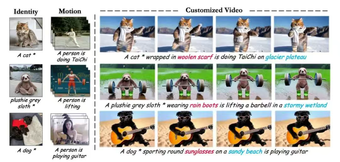 同时,DiT 模型在不同去噪阶段和不同深度的网络层,对身份与运动特征的关注焦点时刻发生变化,如何动态协调身份与运动特征的比例,以实现高质量模式定制: