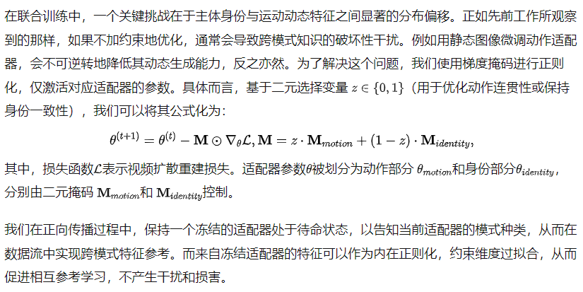 2、在联合训练范式中,如何动态协调身份与运动特征的比例,以适配 DiT 模型在不同去噪阶段和不同深度网络层的需求