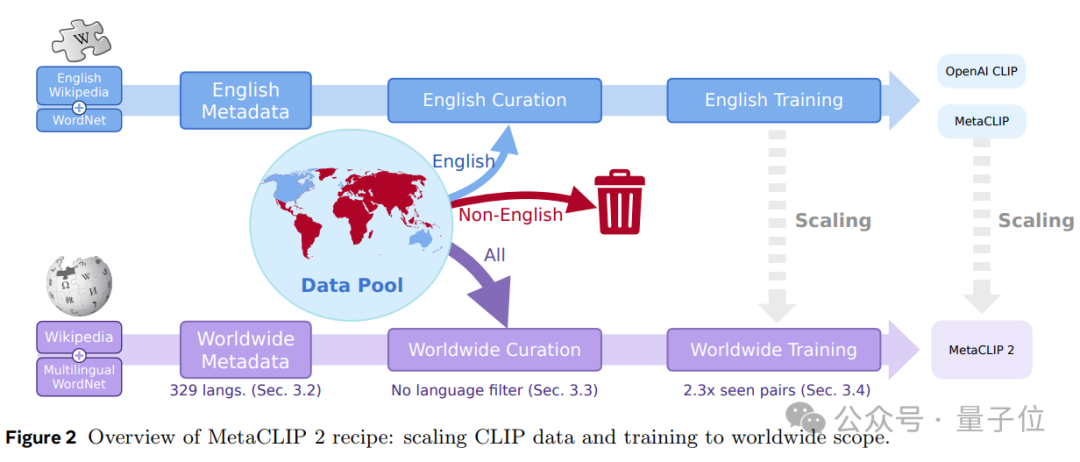 而MetaCLIP 2,正是在英文MetaCLIP的基础上,进一步优化了架构和流程。