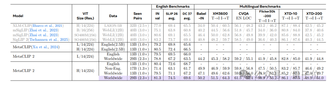 原文链接:谢赛宁团队新作打破“多语言诅咒”!MetaCLIP 2支持300多种语言,英语性能反倒提升了