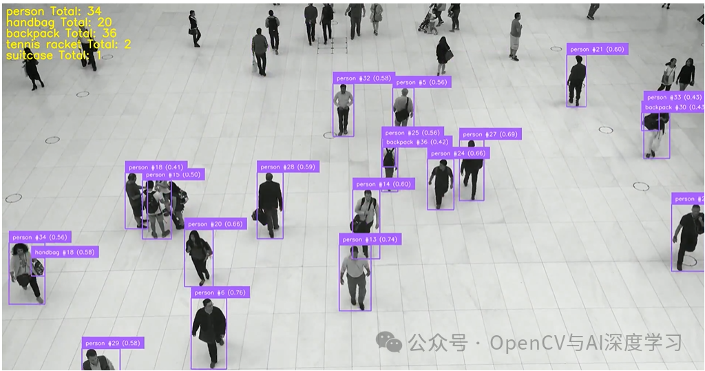 计算机视觉中的目标计数是系统自动识别和计算图像或视频帧中特定目标实例的任务。核心目标是检测和枚举图像或视频中场景中出现的感兴趣目标(例如,人、车辆、产品)的数量。