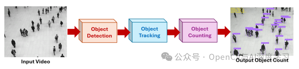 对视频中的目标进行计数不仅涉及检测单个帧中的目标,还涉及随着时间的推移跟踪它们以避免重复。该过程通常包括以下阶段: