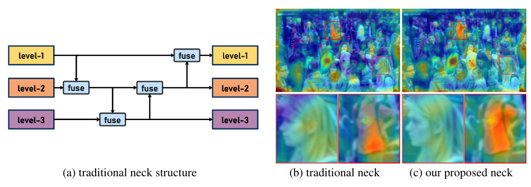 我们的方法因此能够更有效地利用主干网络提取的特征,并且可以轻松集成到任何现有的主干 - 颈部 - 头部结构中。