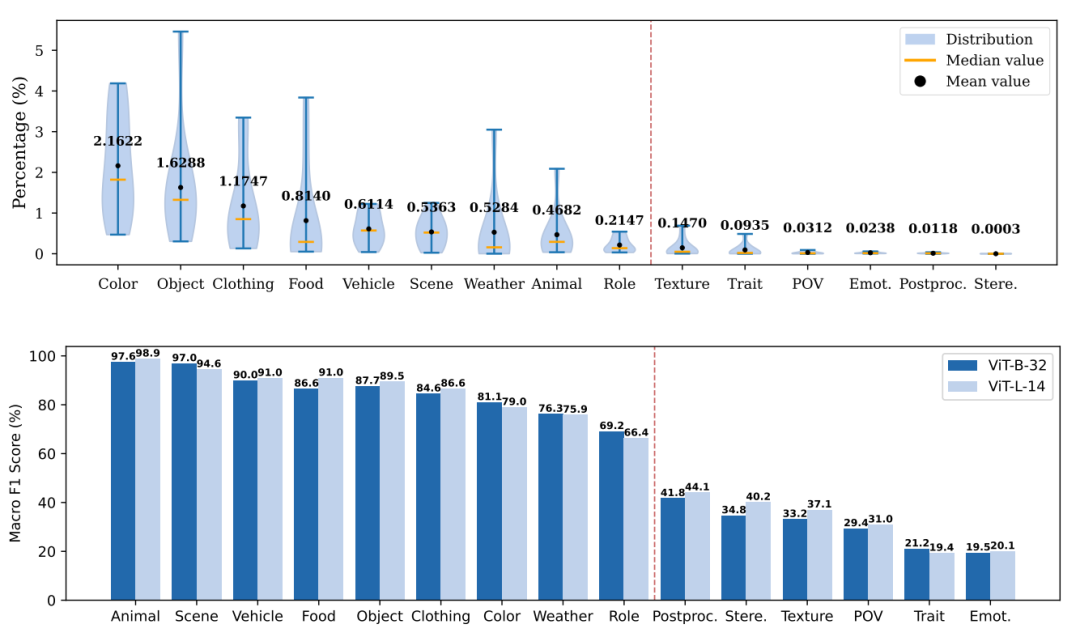 仿真实验:完美还原无偏差语义;被遗漏或扰动的因子不可恢复。 可控的图像文本数据集:即便因子间存在未知的因果关联,实证验证仍然验证了模块可辨识性。 OpenCLIP案例研究:描述文本中罕见的概念(选择偏差的典型表现)其表征质量显著低下; 值得注意的是,轻度错位虽保持表层性能稳定 (由于优化过程的渐进误差等因素),却可能导致潜在认知图畸变——我们的模型精准预测了这些效应。