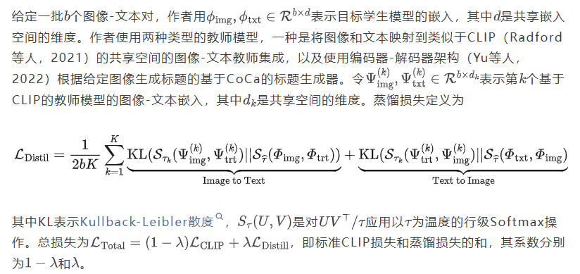 1. 提出了改进的多模态强化训练方法,包括使用更好的CLIP教师集成(DFN数据集训练)和改进的字幕生成器(在DFN数据集上训练并微调)。