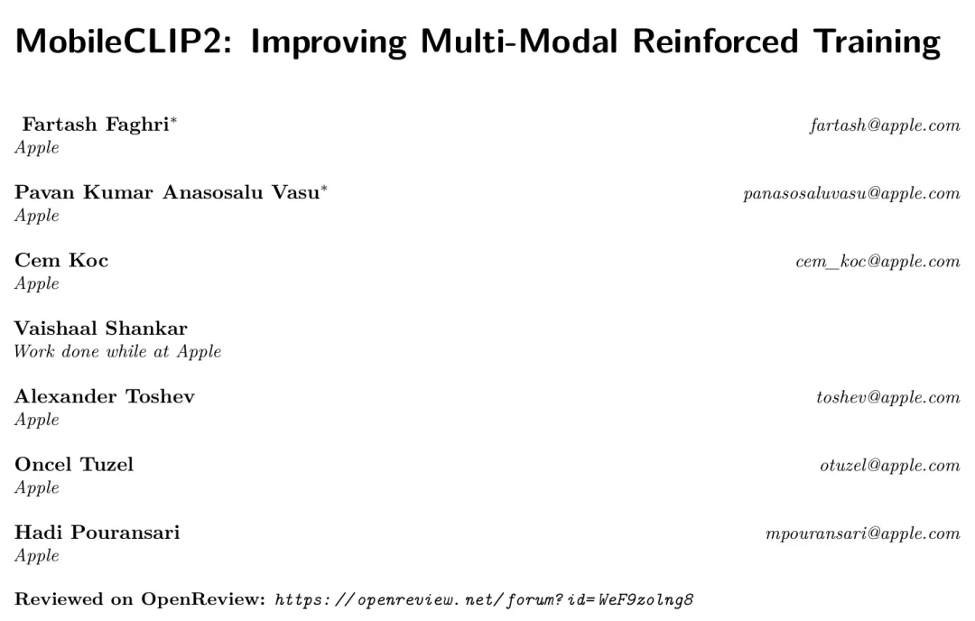 [1]. MobileCLIP2: Improving Multi-Modal Reinforced Training