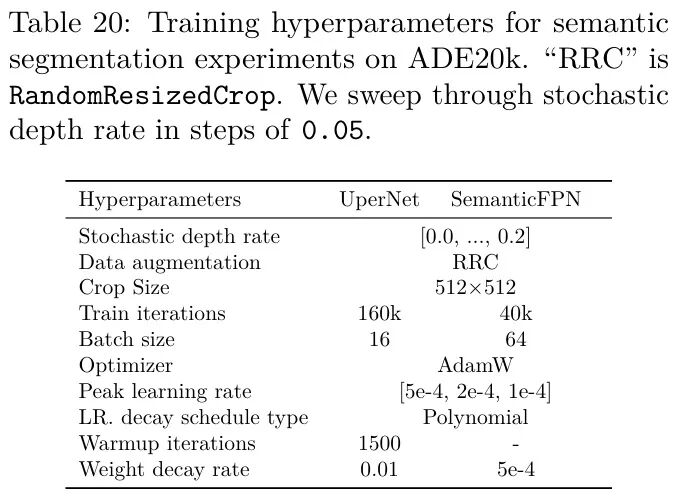 作者通过在目标检测、语义分割和深度估计等密集预测任务上微调图像编码器,来评估所学视觉表示的质量。在表10中,作者报告了使用MaskRCNN He et al. (2017)头的ViT-B/16模型在MS-COCO Chen et al. (2015)数据集上进行实例分割的性能。所有模型均使用MMDetection库Chen et al. (2019)进行训练,采用调度和单尺度测试,如Wei et al. (2023)中所述。作者遵循Wei et al. (2023)中描述的微调设置,更多细节见附录。在表11中,作者报告了使用UperNet Xiao et al. (2018)头的ViT-B/16模型的性能,该模型使用Liu et al. (2024c)中描述的相同设置在ADE20k (Zhou et al., 2017)数据集上进行训练。在表12中,作者报告了在NYUv2数据集Nathan Silberman & Fergus (2012)上的均方根误差(RMSE)。作者使用与Vasu et al. (2024b)中描述的相同设置,更多细节在附录中提供。