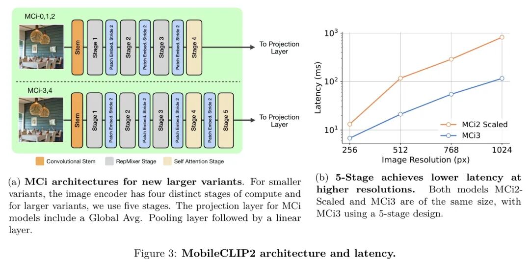 2. 引入了新的模型架构变体(MobileCLIP2-S3和MobileCLIP2-S4),采用五阶段设计,显著提升了高分辨率下的推理效率。