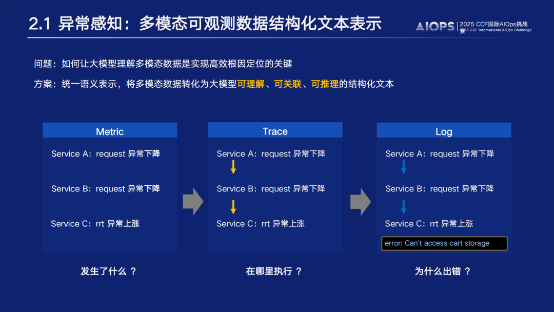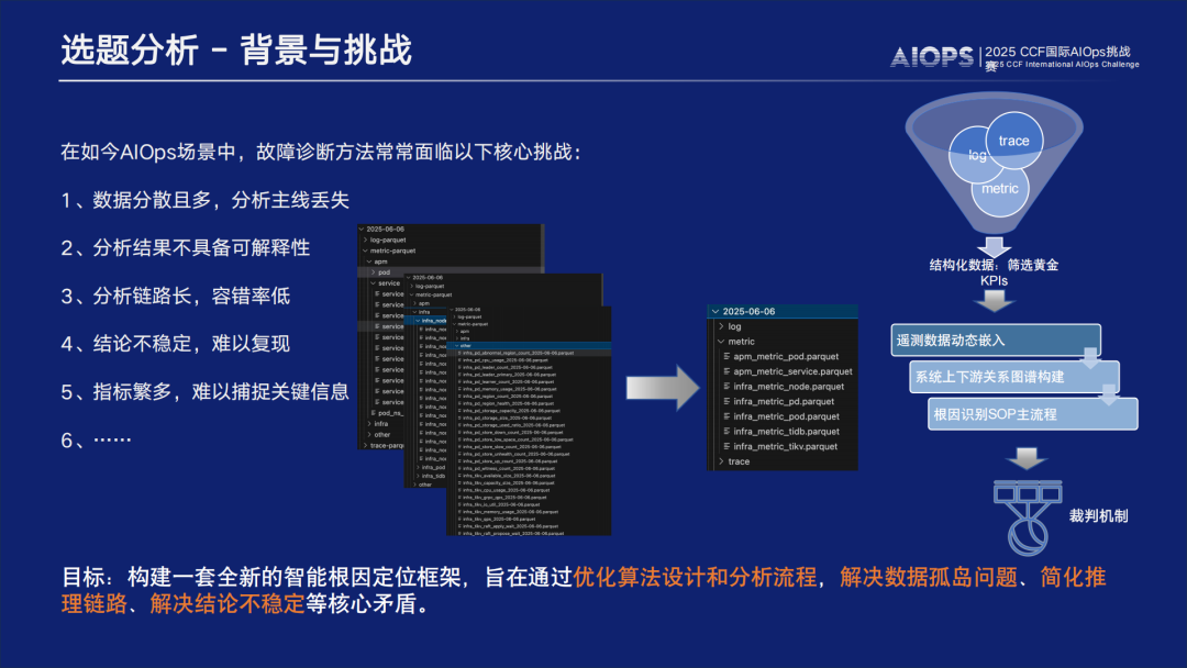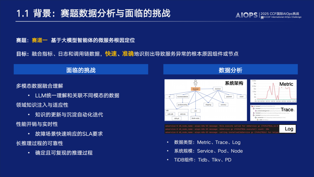 聚焦于微服务系统中的根因定位问题。参赛者需基于比赛提供的微服务系统数据,构建一个融合监控指标、日志和调用链数据的大模型根因定位系统。
