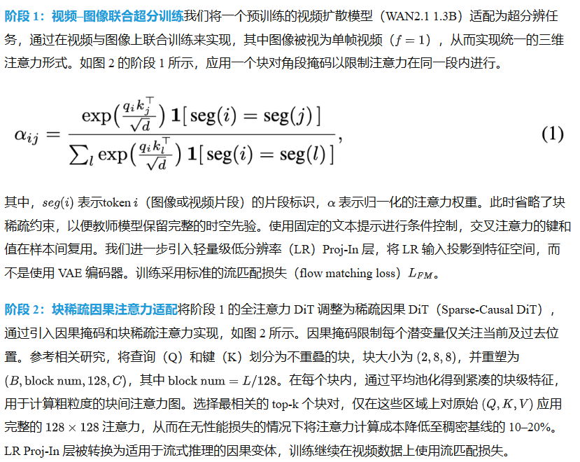如下图 2 所示,FlashVSR 基于三阶段蒸馏框架构建,并结合局部约束稀疏注意力以缓解训练与推理分辨率之间的差距,同时引入轻量条件解码器以降低 3D VAE 解码器的计算开销。以下将详细介绍各部分内容。