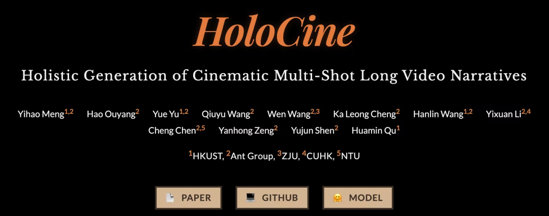 提出 HoloCine 模型,通过整体生成方法确保从第一个到最后一个镜头的全局一致性,填补多镜头间“叙事差距”。