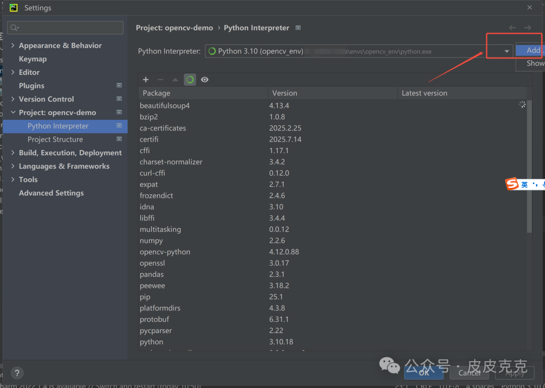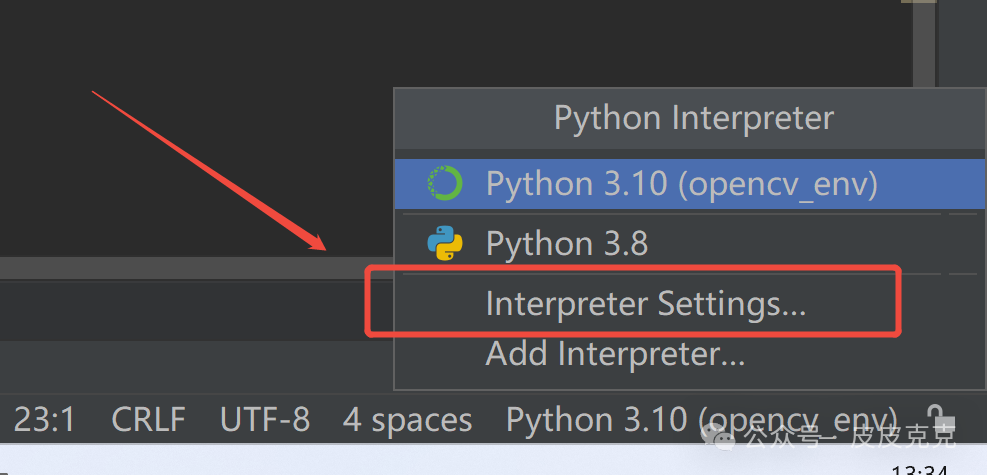 点击箭头的齿轮,会有 "Add Python Interpreter",点进去