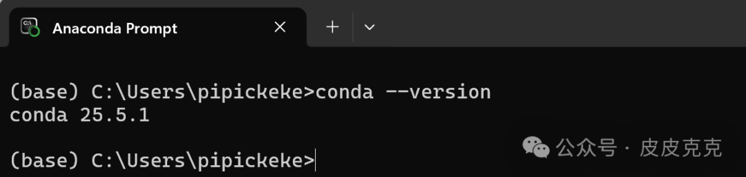 完成安装后,打开 Anaconda Prompt(或系统终端)测试