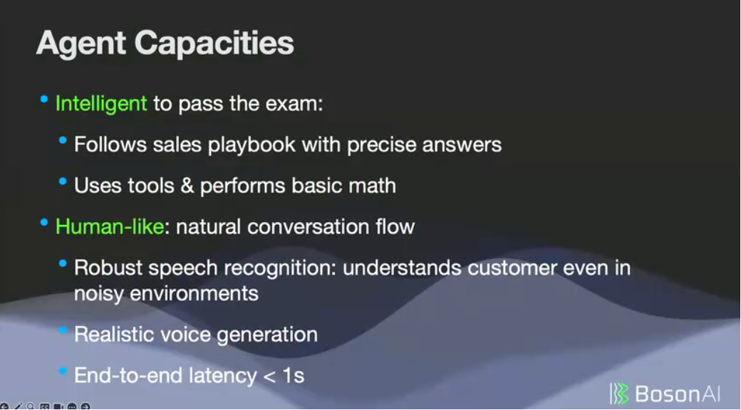 此外,语音必须非常“类人化”。当你打电话时,对方可能在外面、背景嘈杂、带口音,智能体必须能理解、应对这些情况,语音听起来自然,而非机械。