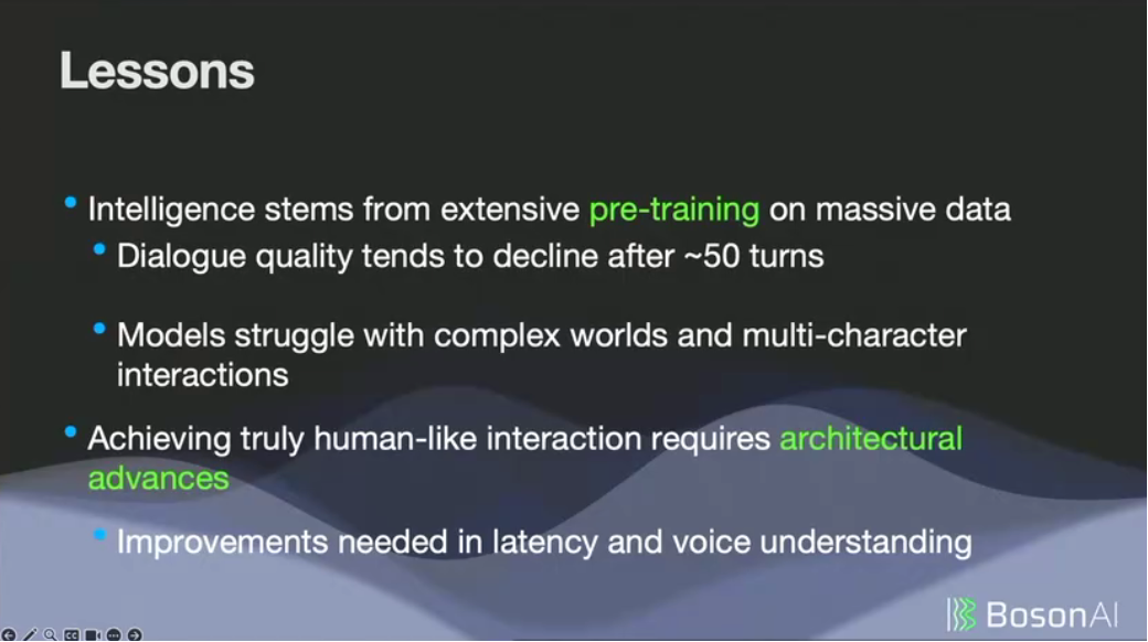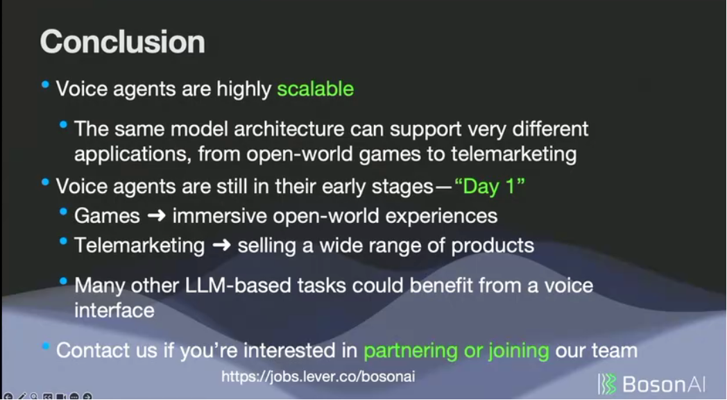 我刚才展示了我们在过去两年中开发的两个语音智能体项目。我们得到的经验是:语音智能体任务是有高度可扩展性的。