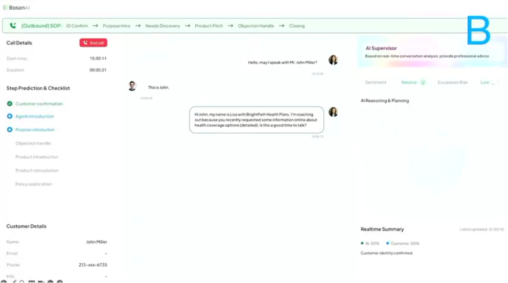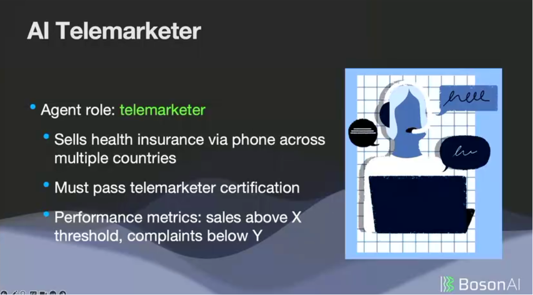 其次,整个保险行业监管非常严格。让我解释一下具体问题。我们现在做的是Al电话销售员(Al telemarketer),也就是说,语音智能体扮演的是“电话推销员”的角色。当前的案例是通过电话销售健康保险,且覆盖多个国家。