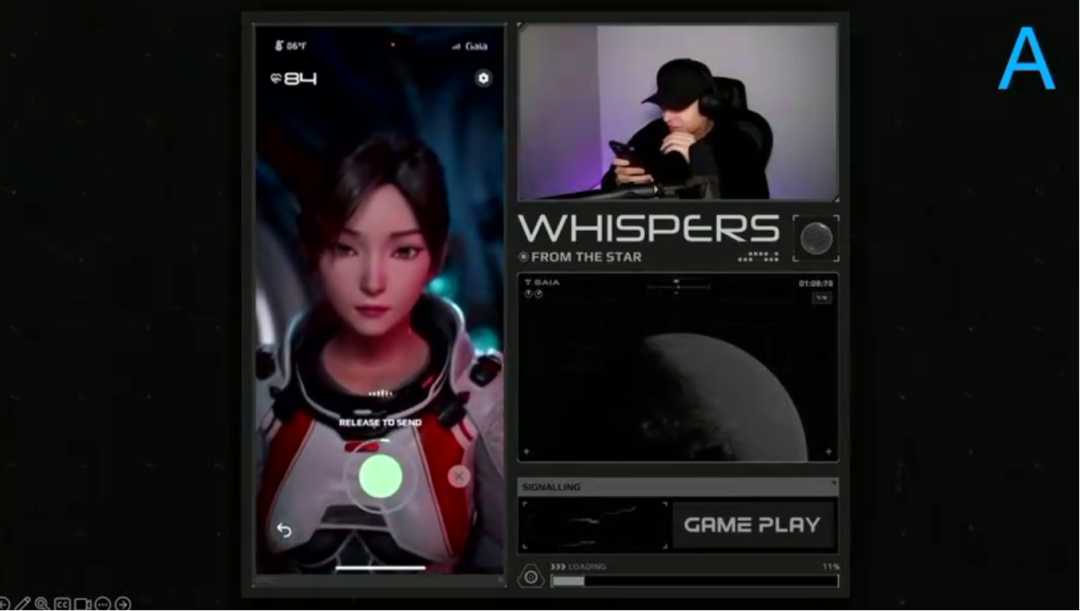 这是我们大约两年半前开始制作的一款游戏。这是一个应用程序。这就是用户界面。游戏中的角色名叫Stella,玩家通过语音与她互动,帮助她完成任务。