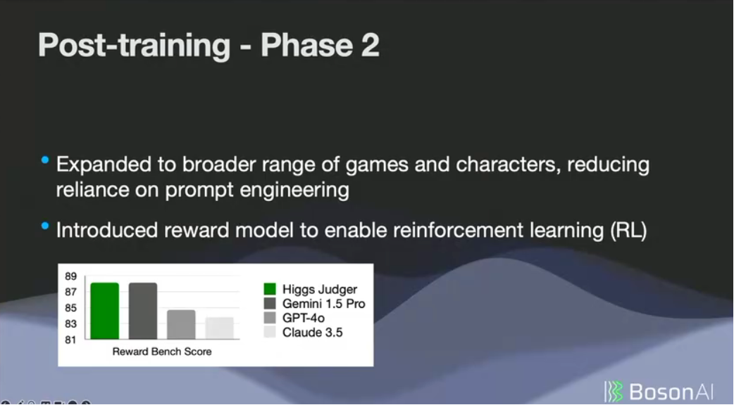 我们希望让游戏设计师来编写提示词,但这并不可持续。一年半前,我们想到要先预训练一个奖励模型(reward model),让它自动判断哪种回应好、哪种不好, 而不是依赖人工打分。