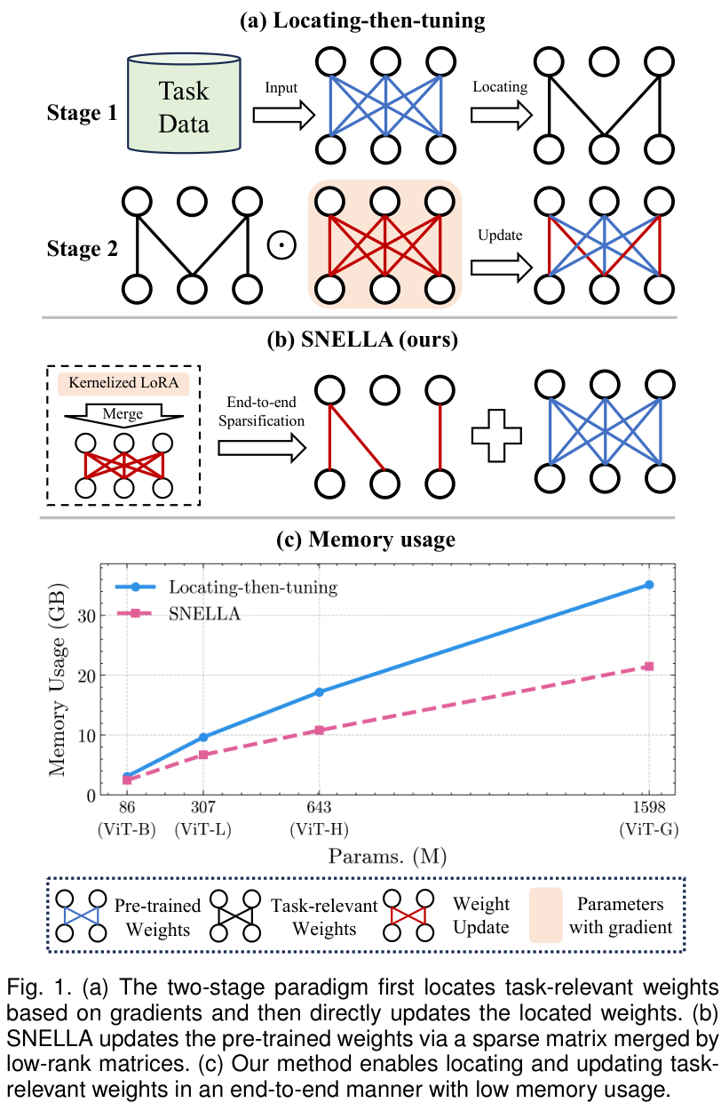 SNELLA巧妙地将权重的定位和更新融合在一个端到端的框架中,既省内存,又提性能。它的核心思想可以分解为两大创新点。
