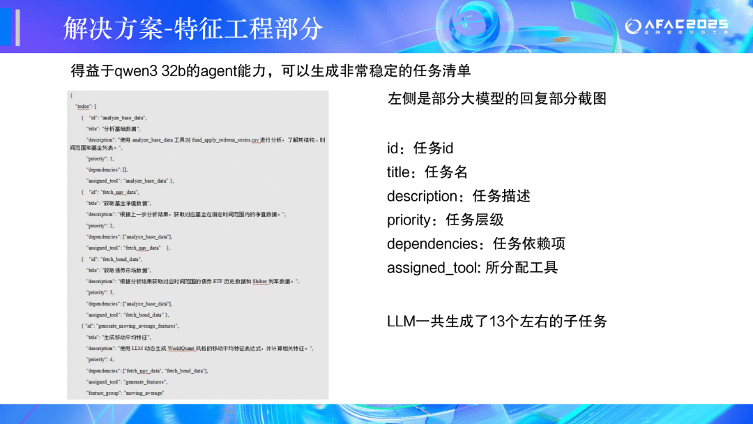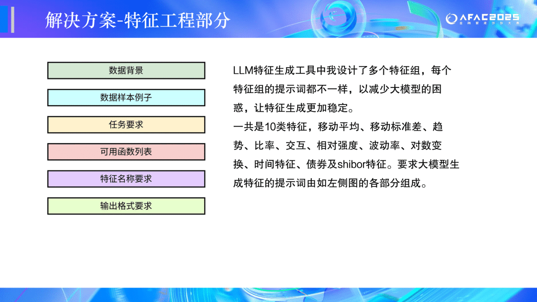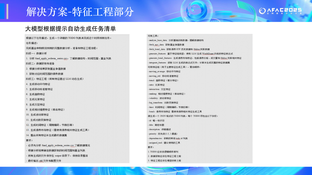 特征构造应尽可能使用大模型:金融类特征(如产品收益、行情等)强制要求使用大模型构造;非金融类特征(如是否交易日等)可以手动构造。 我们最终结合大模型使用能力和模型预测精度综合判定参赛者成绩。