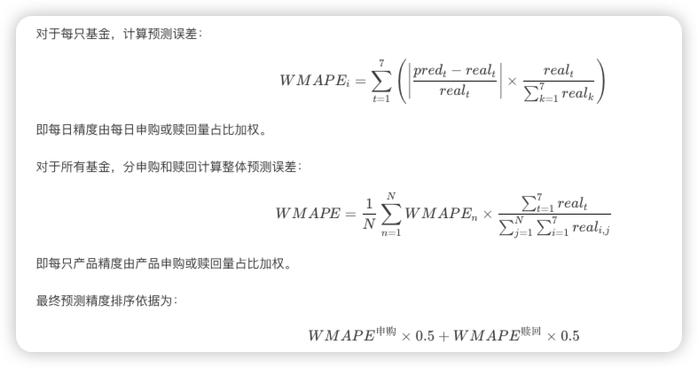 评价指标:WMAPE(Weighted Mean Absolute Percentage Error,加权平均绝对百分比误差)。