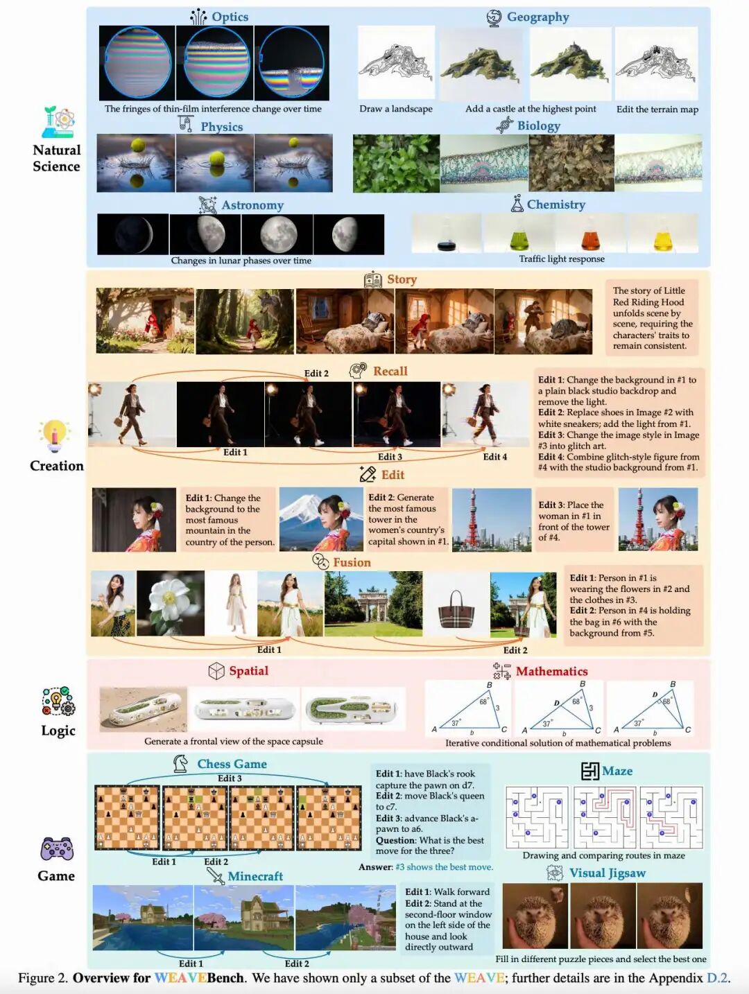 WEAVEBench:一个包含100项任务(基于480张图像)的人工标注基准测试平台,用于系统评估模型能力。